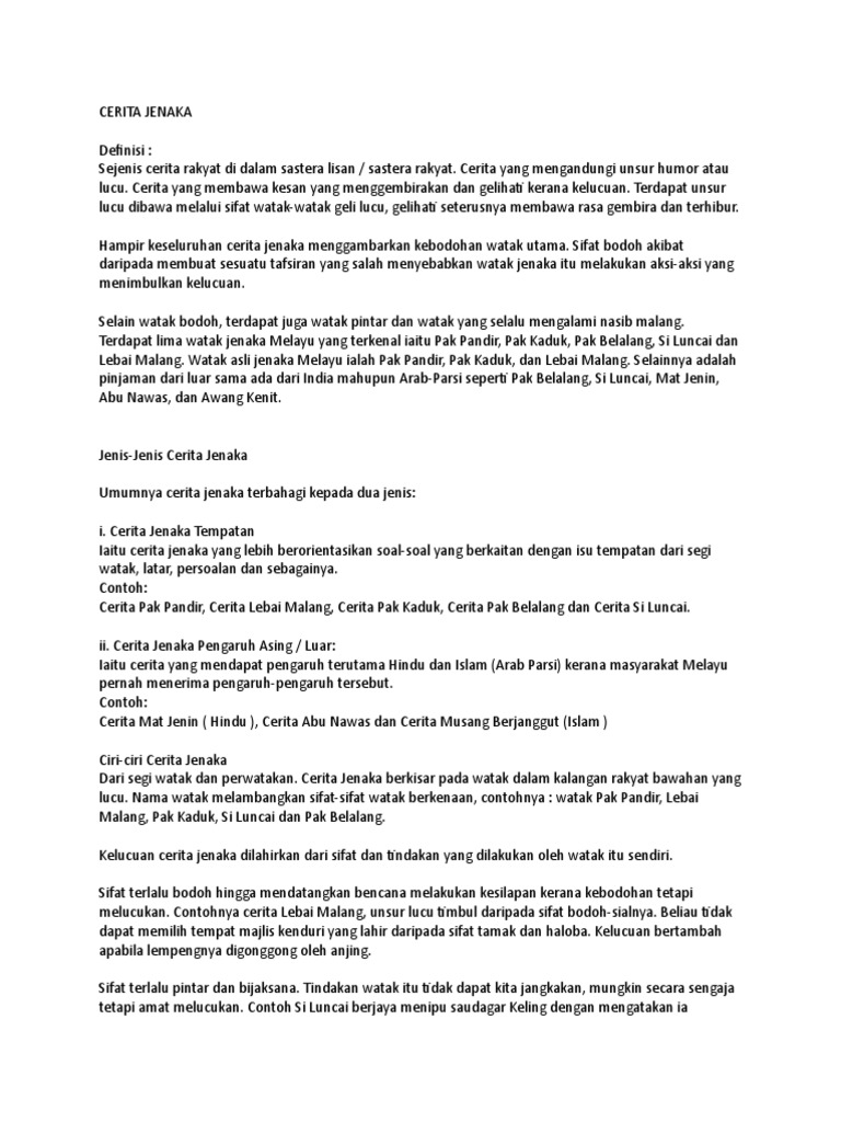 Doc Cerita Jenaka Melayu Sakinah Farhana Academia Edu